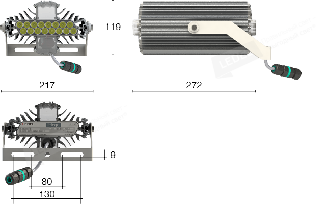 Дополнительная защита проводов. Во избежание механических повреждений проводов прожекторы LEDEL оснащены защитной гофрированной трубкой из ПВХ. При разработке продукции наша команда делает акцент не только на инновационной составляющей, но и на надежности, удобстве эксплуатации, сохранении работоспособности в течение всего срока службы светильника.