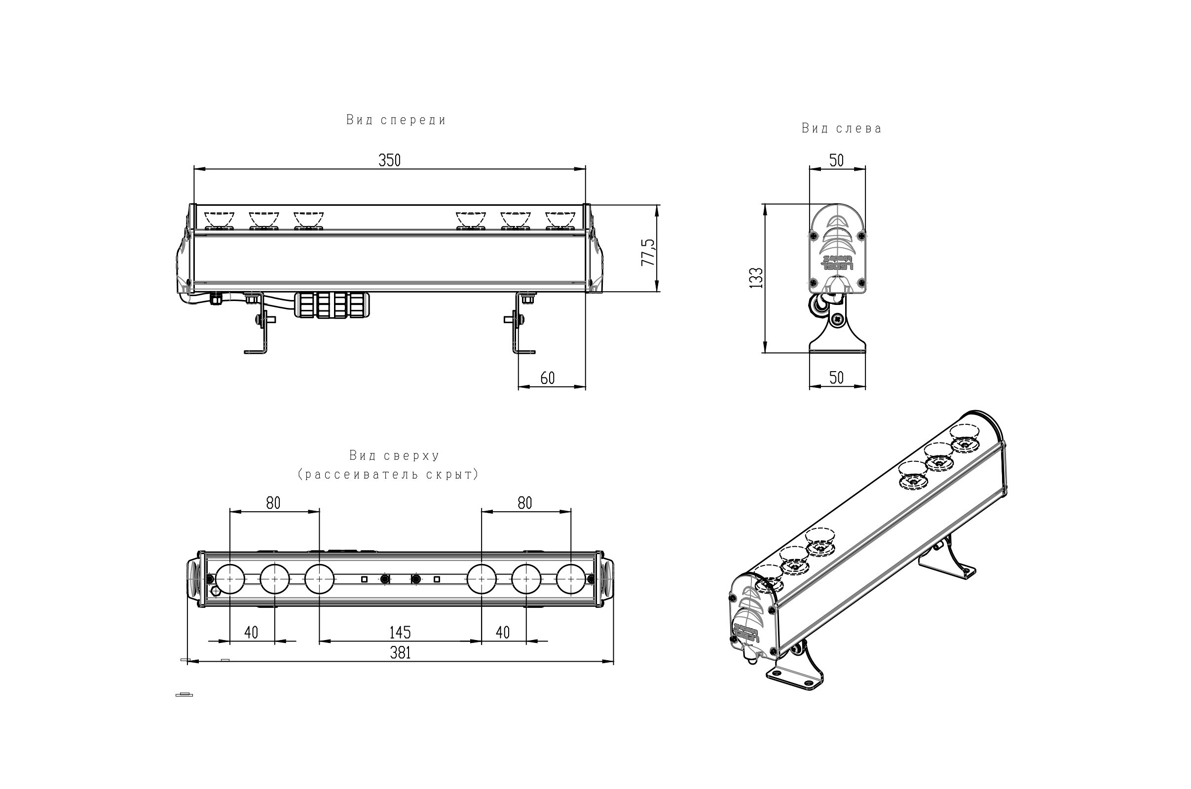 | Габаритные размеры светильника, мм | 133x350x50 |