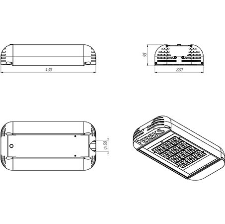 | Габаритные размеры светильника, мм | 220х95х430 |