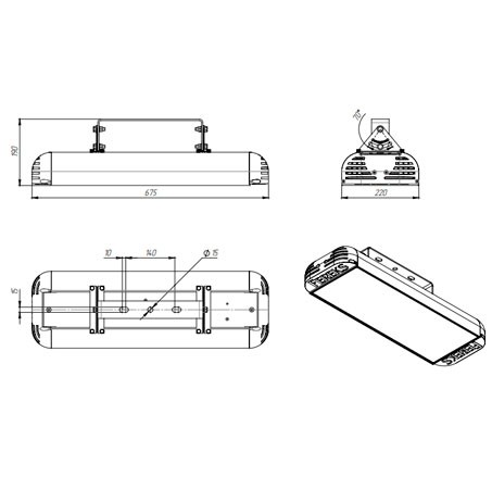| Габаритные размеры светильника, мм | 675х250х255 |
