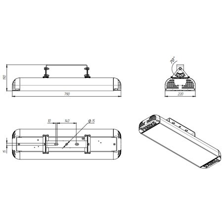 | Габаритные размеры светильника, мм | 790х250х255 |