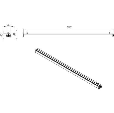 | Габаритные размеры светильника, мм | 80х1500х60 |