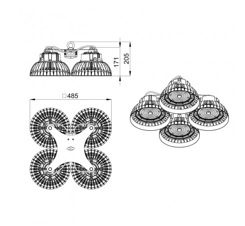 | Габаритные размеры светильника, мм | 485х485х205 |
