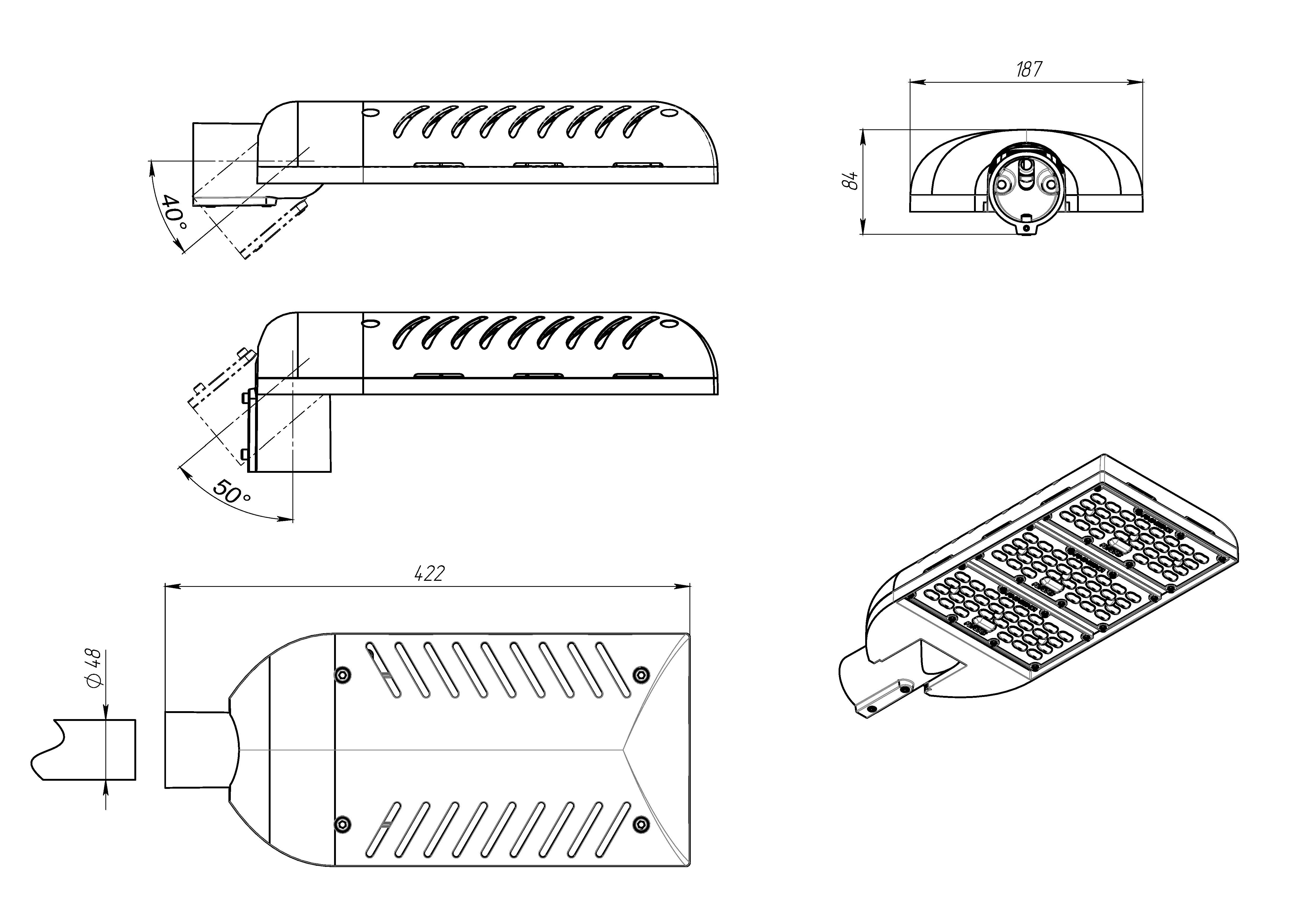 | Габаритные размеры светильника, мм | 422х187х84 |