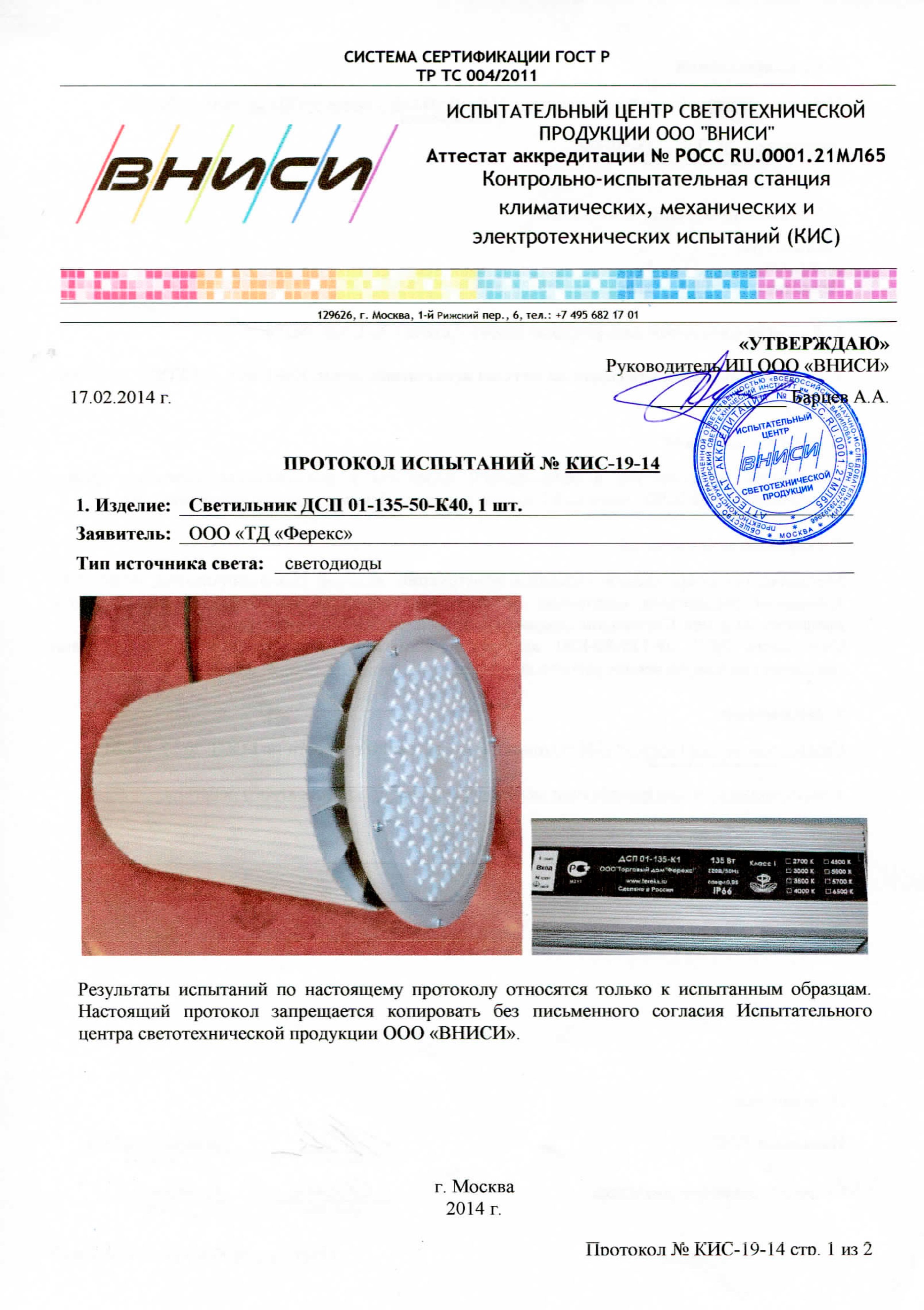 Сертификат таможенного союза на светильники ДБУ, FWL, FML, FTL