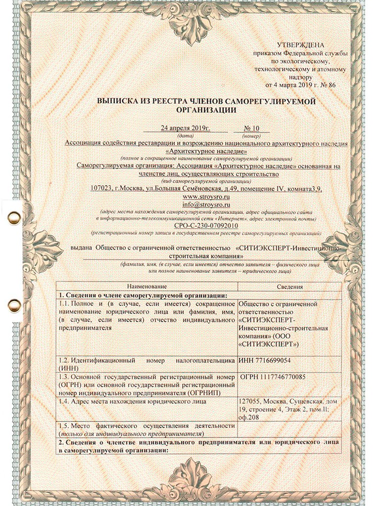 Выписка из реестра членов саморегулируемой организации Ассоциация "Архитектурное наследие", стр. 1