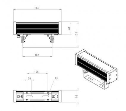 | Габаритные размеры светильника, мм | 250×135×62 |