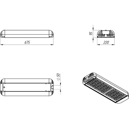 | Габаритные размеры светильника, мм | 220х95х675 |