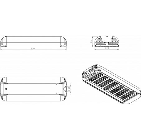 | Габаритные размеры светильника, мм | 220х95х600 |