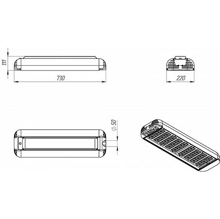 | Габаритные размеры светильника, мм | 220х112х730 |
