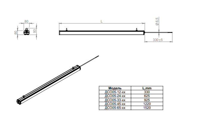 | Габаритные размеры светильника, мм | 80х600х60 |