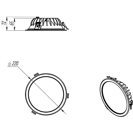 | Габаритные размеры светильника, мм | Ø220х72 (Øотв=200) |