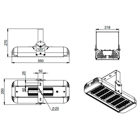 | Габаритные размеры светильника, мм | 550х250х270 |