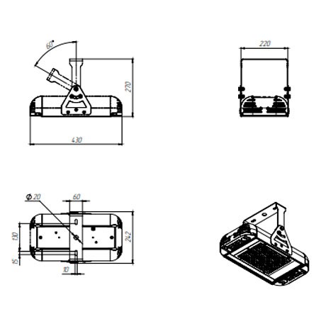| Габаритные размеры светильника, мм | 430х250х270 |