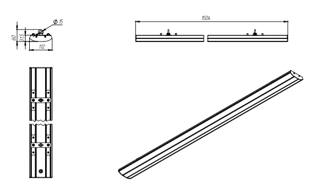 | Габаритные размеры светильника, мм | 1504х112х32 |