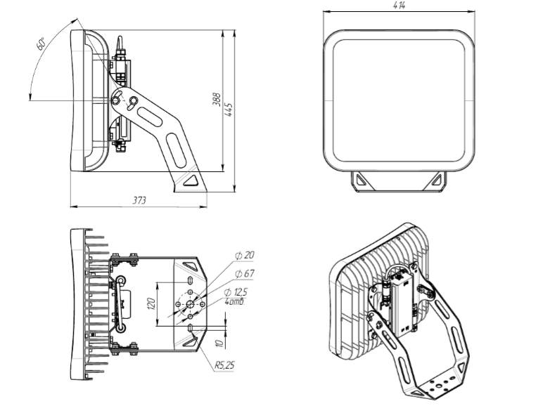 | Габаритные размеры светильника, мм | 415х450х370 |