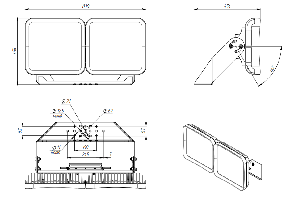 | Габаритные размеры светильника, мм | 830х460х455 |