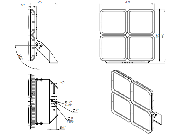 | Габаритные размеры светильника, мм | 830х815х455 |