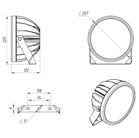 | Габаритные размеры светильника, мм | 130х207х220 |