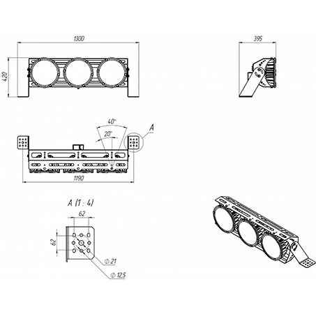 | Габаритные размеры светильника, мм | 1300х420х395 |
