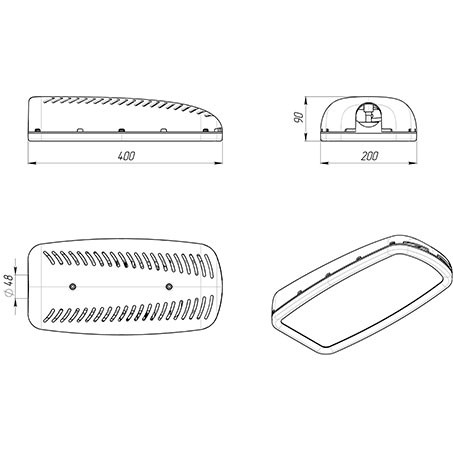 | Габаритные размеры светильника, мм | 400х200х85 |
