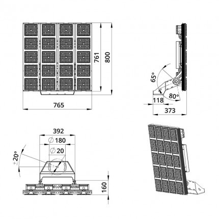 | Габаритные размеры светильника, мм | 800x765x373 |