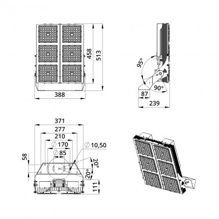 | Габаритные размеры светильника, мм | 513×388×239 |