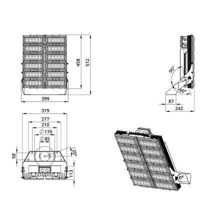 Также это исполнение имеет поворотные модули, которые можно ориентировать независимо друг от друга в разных направлениях. Количество модулей варьируется в зависимости от мощности светильника.