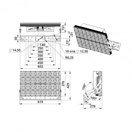 | Габаритные размеры светильника, мм | 619×429×278 |