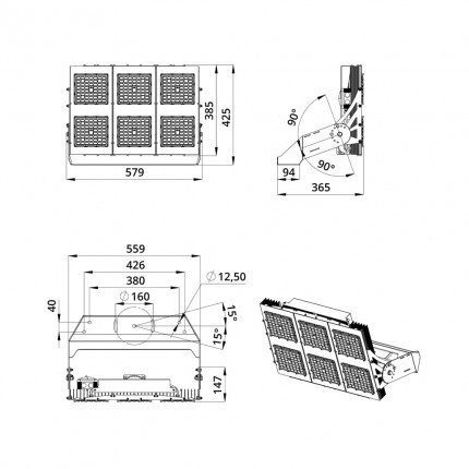 | Габаритные размеры светильника, мм | 579×425×365 |