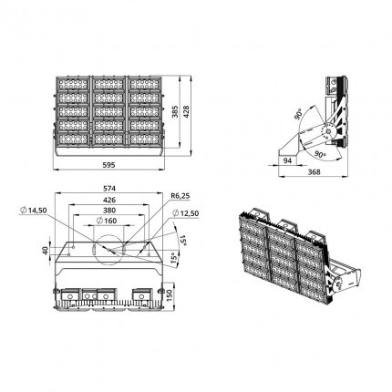 | Габаритные размеры светильника, мм | 595x428x368 |